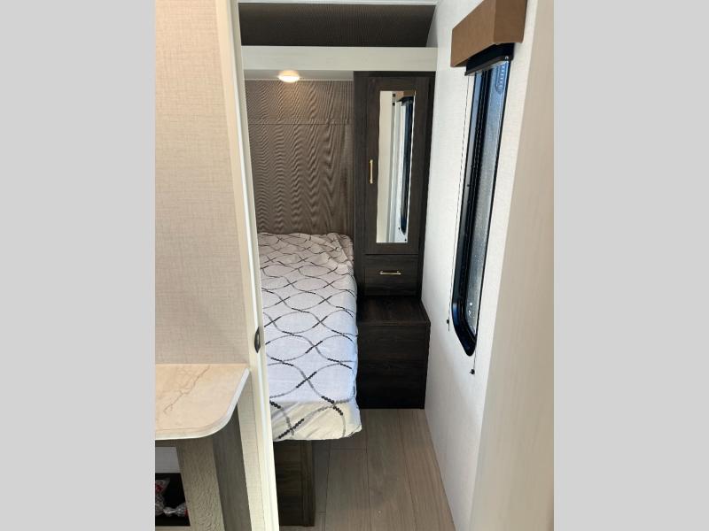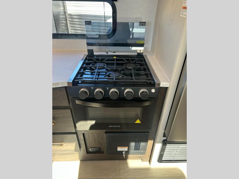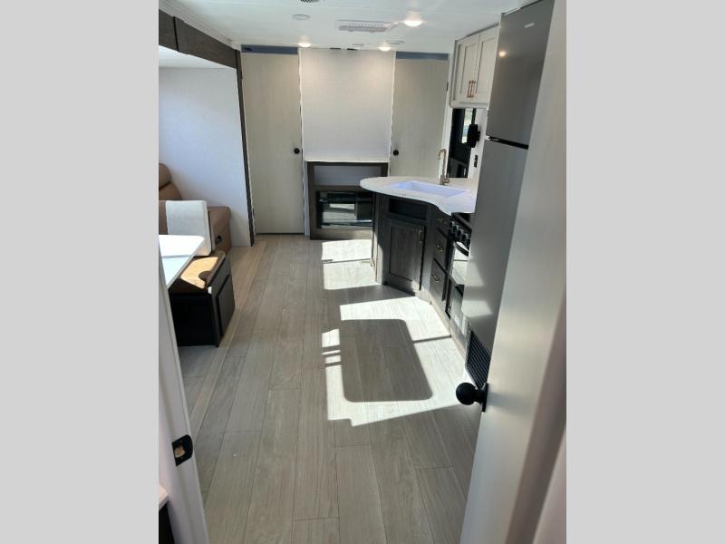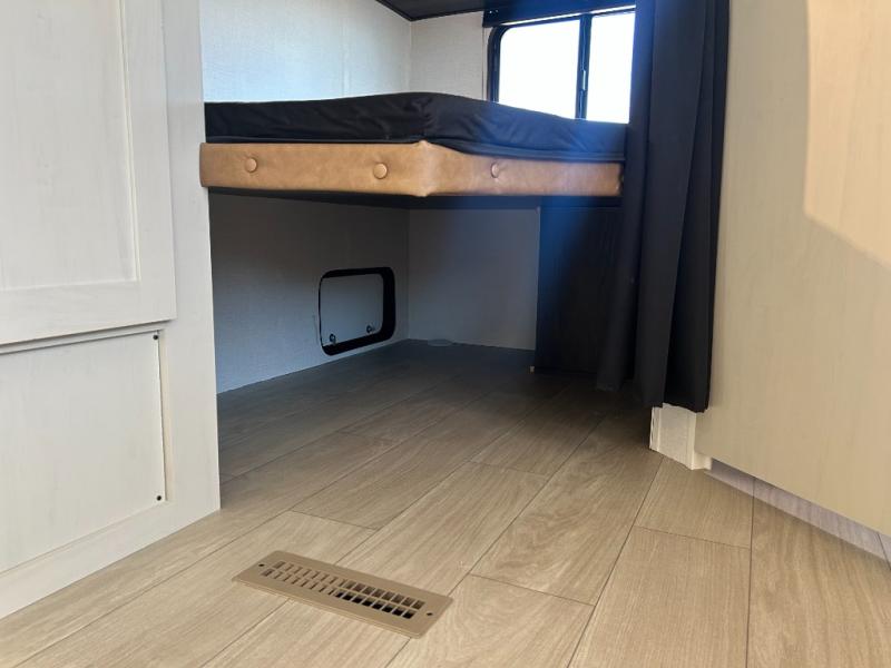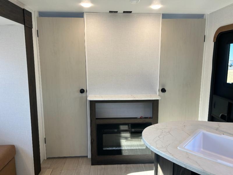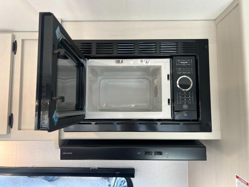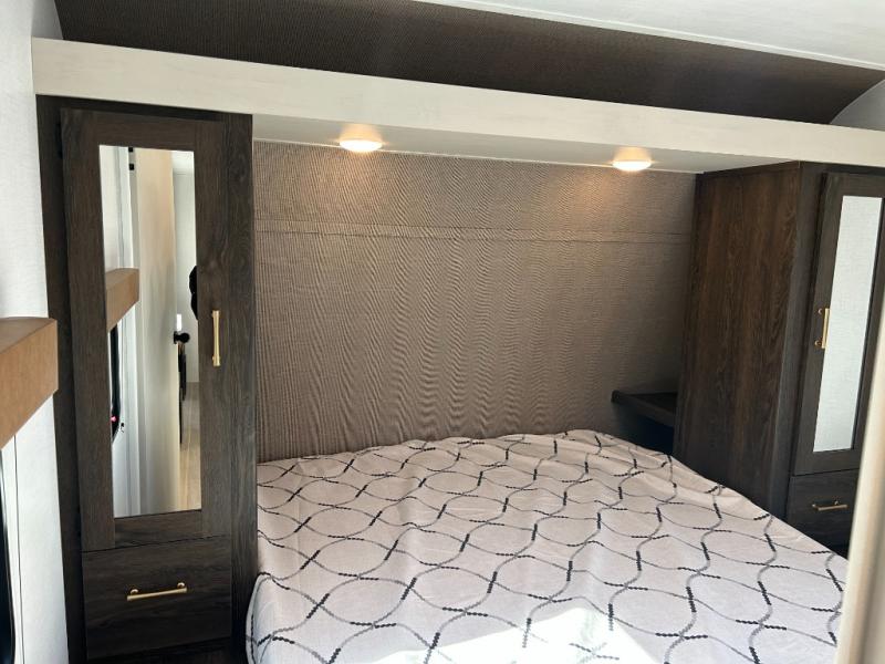 If you've been searching for a travel trailer that can sleep more campers and give you more interior space, this is the one! There are double-size bunks with a ladder for the little ones, an RV queen bed in the front bedroom, plus a jackknife sofa and booth dinette that will double as seating and sleeping space. You will be able to make home cooked meals for your crew since there is a three burner range with a glass top and LED lit knobs, and the 10 cu. ft. 12V refrigerator can keep your food fresh. This model also includes a full bath with a 30" x 36" shower, a foot flush toilet, and a medicine cabinet to keep items organized.