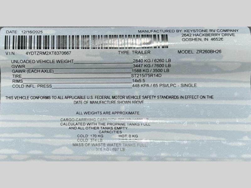 New 2026 CrossRoads RV Zinger 260BH Travel Trailer