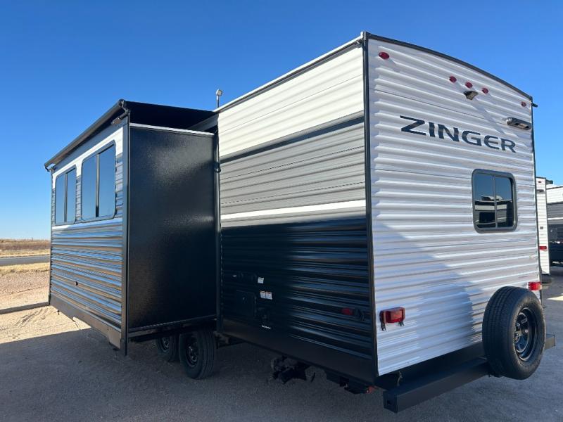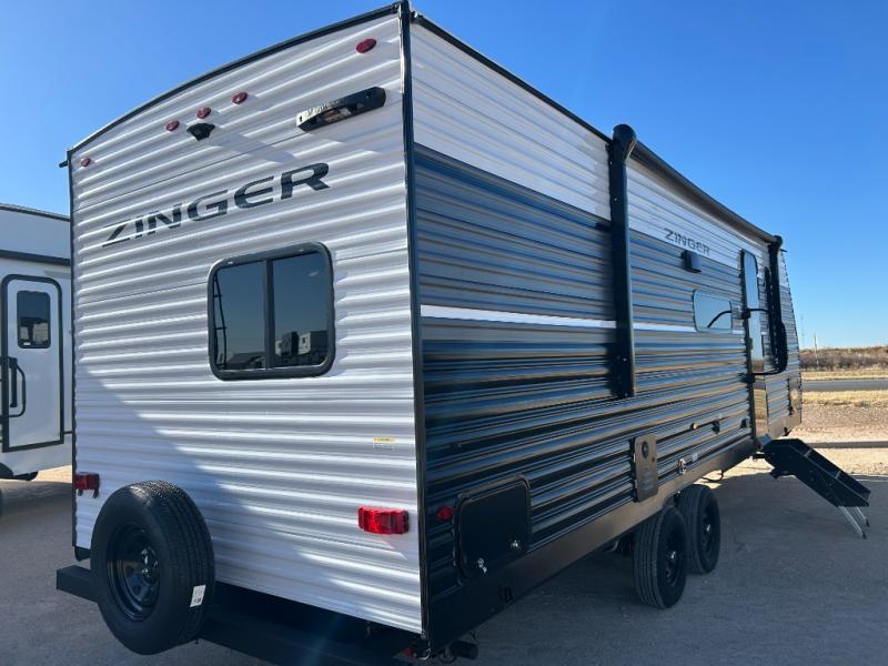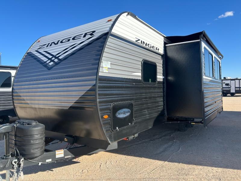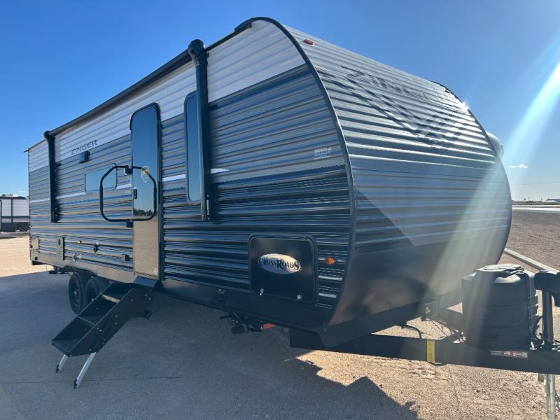 Join the CrossRoads family with a Zinger Lite travel trailer! You'll enjoy an abundance of standard features you would usually find with higher priced travel trailers. Each model features a Super Flex Alpha Roof and front diamond plate for added strength and durability. There is also an electric awning outdoors, along with pass-through storage, rear ladder prep, and a tankless on-demand water heater for added convenience. The interior features pleated shades/mini blinds/fabric window treatments, a 12V refrigerator, comfortable seating and seating spaces, plus plenty of storage for your personal belongings and camp gear!