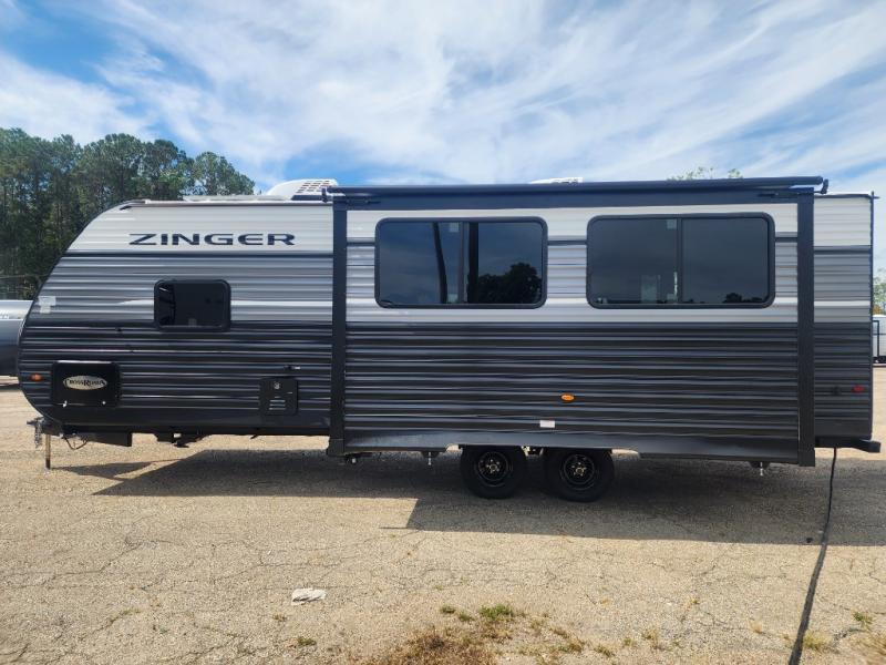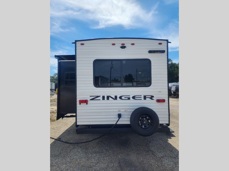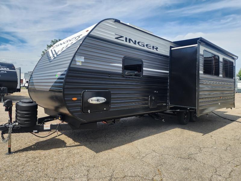 Lead your family to a great vacation getaway in any one of these CrossRoads RV Zinger travel trailers! They feature an aerodynamic front end, Keyed-Alike door locks, Secure Stance entry steps, and exterior speakers with LED accents. The interior of each model includes kitchen backsplash and pressed countertops, along with generous storage, designer valances, and LED lighting to keep your space well lit. You will also appreciate USB ports to keep your electronics charged up, and there is an AM/FM stereo with a Bluetooth soundbar to keep the party going!