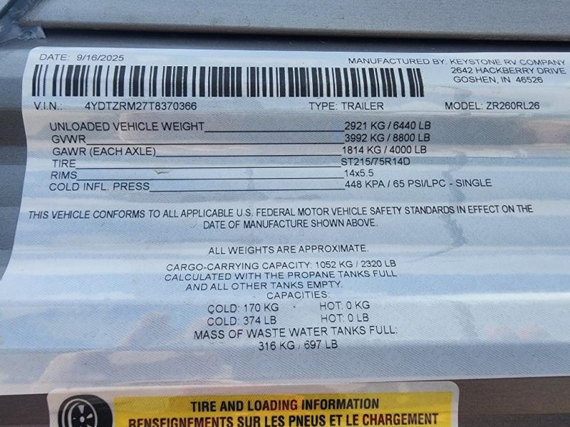 New 2026 CrossRoads RV Zinger 260RL Travel Trailer