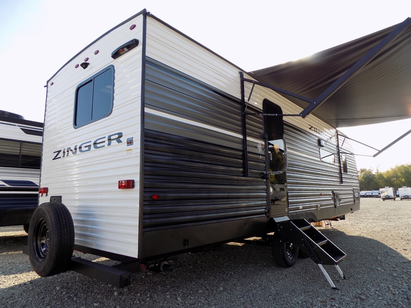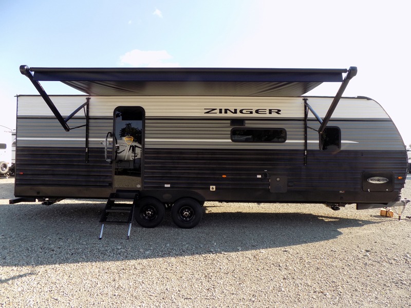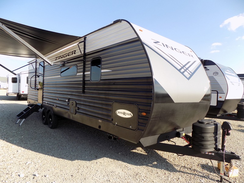 Lead your family to a great vacation getaway in any one of these CrossRoads RV Zinger travel trailers! They feature an aerodynamic front end, Keyed-Alike door locks, Secure Stance entry steps, and exterior speakers with LED accents. The interior of each model includes kitchen backsplash and pressed countertops, along with generous storage, designer valances, and LED lighting to keep your space well lit. You will also appreciate USB ports to keep your electronics charged up, and there is an AM/FM stereo with a Bluetooth soundbar to keep the party going!
