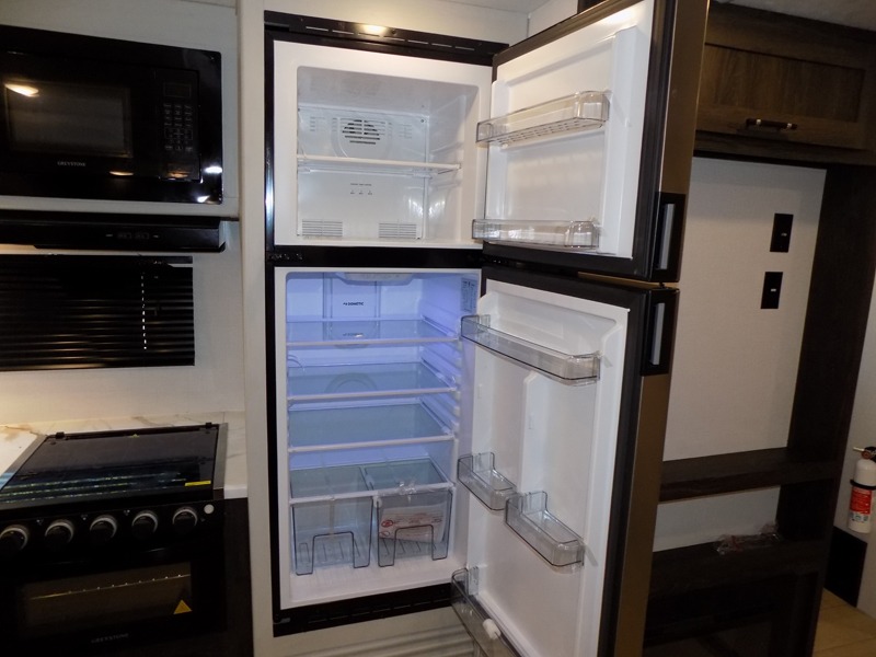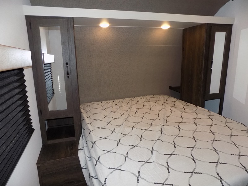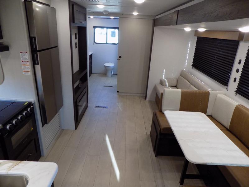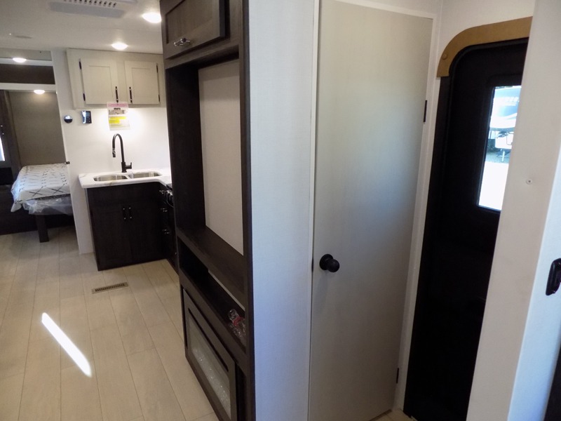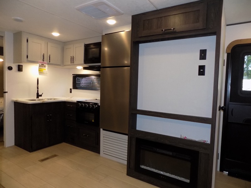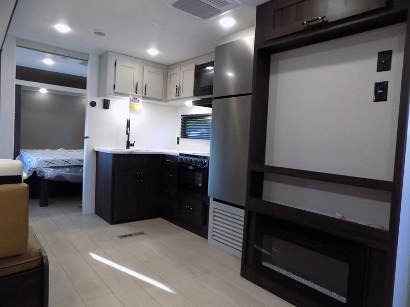 You need this award-winning travel trailer for your next weekend getaway! The full rear bathroom is decked out in features you're going to love like the dual-sink vanity for two to get ready at once, the linen closet next to the 30" x 36" shower and the second linen closet across from the closet with washer and dryer prep. After a fun-filled day outdoors, you can head inside and relax on either the 60" jackknife sofa and enjoy the entertainment center with a fireplace or grab a snack from the 10-cu. ft. refrigerator and play a few card games at the U-shaped dinette. The front private bedroom features a 60" x 74" RV queen bed with shirt closets on either side of it to keep your clothes looking nice!
