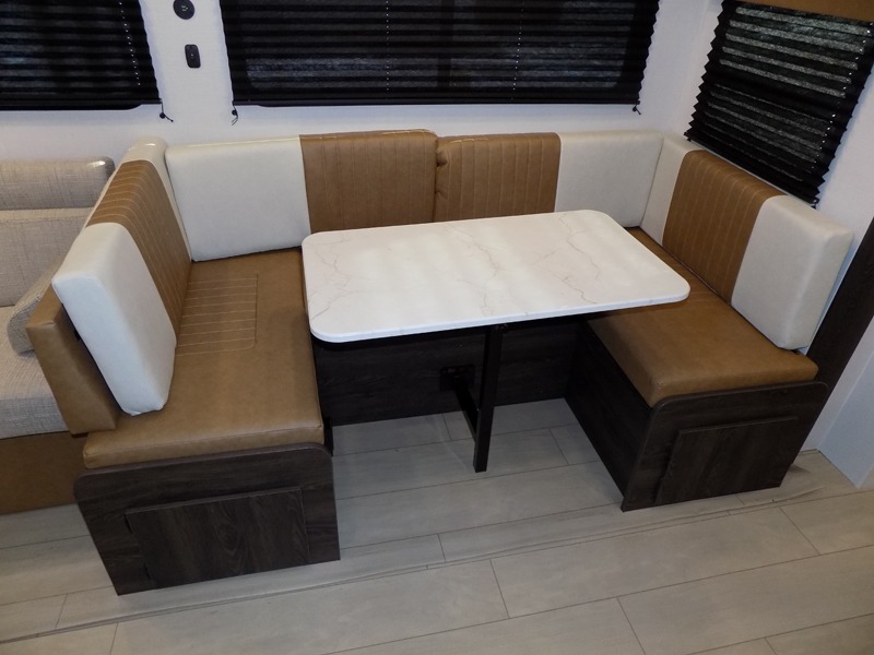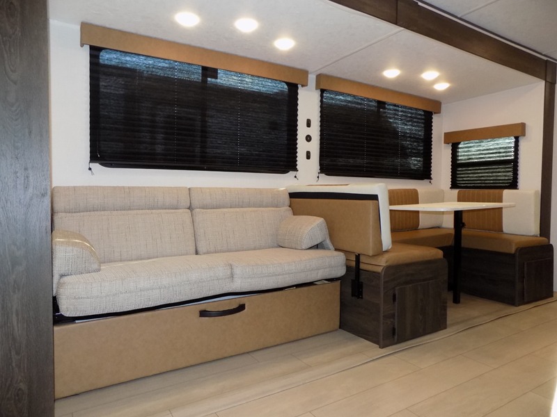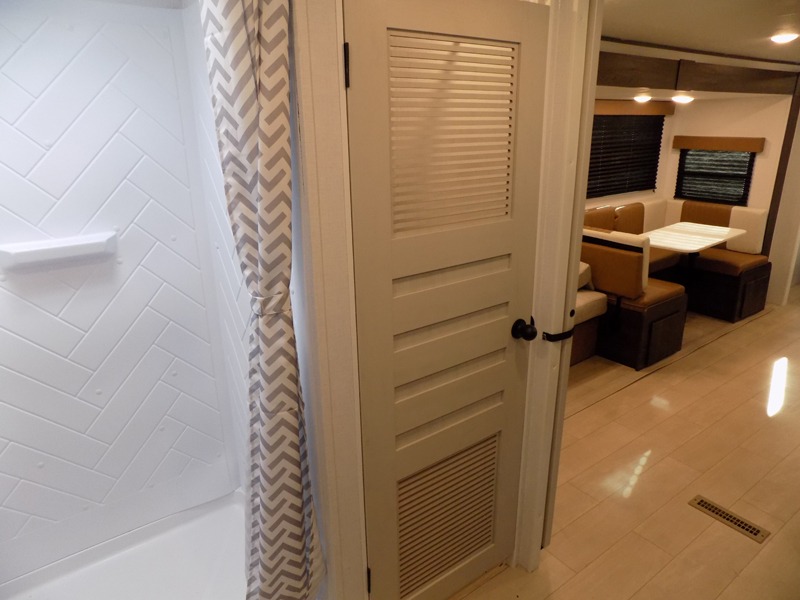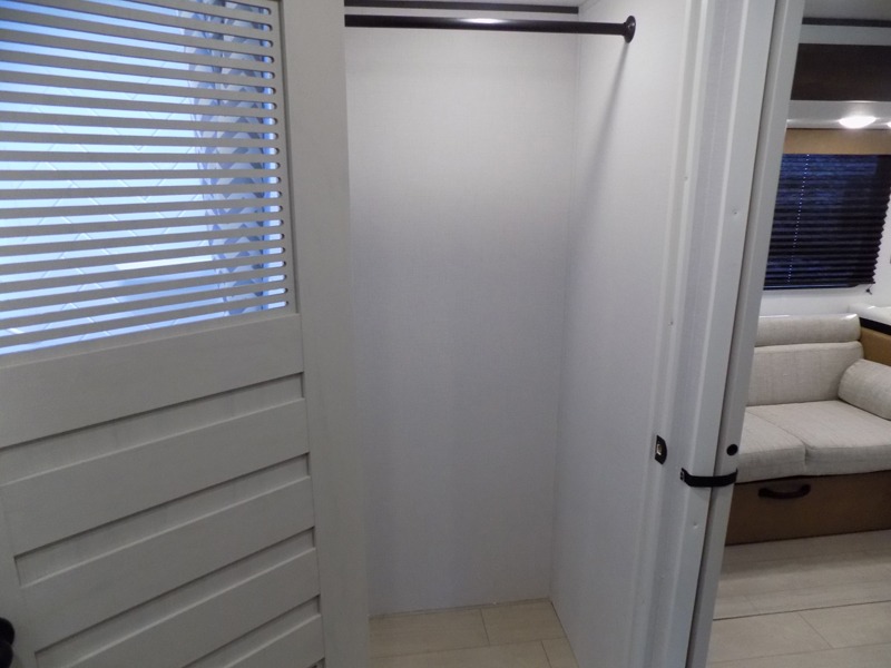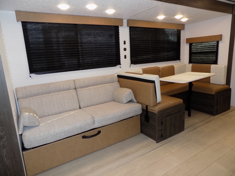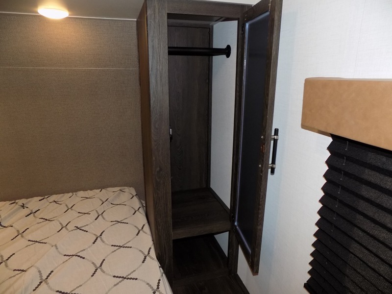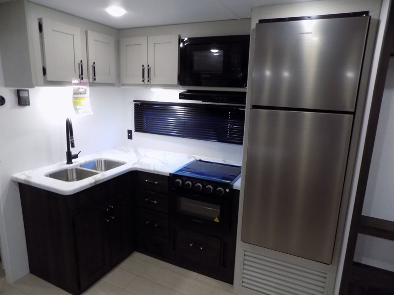 You need this award-winning travel trailer for your next weekend getaway! The full rear bathroom is decked out in features you're going to love like the dual-sink vanity for two to get ready at once, the linen closet next to the 30" x 36" shower and the second linen closet across from the closet with washer and dryer prep. After a fun-filled day outdoors, you can head inside and relax on either the 60" jackknife sofa and enjoy the entertainment center with a fireplace or grab a snack from the 10-cu. ft. refrigerator and play a few card games at the U-shaped dinette. The front private bedroom features a 60" x 74" RV queen bed with shirt closets on either side of it to keep your clothes looking nice!