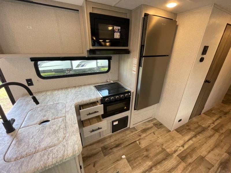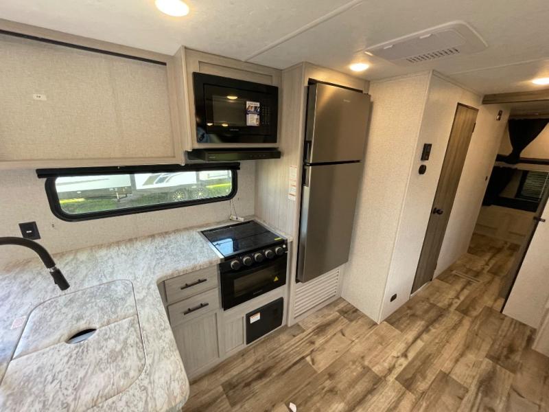 Lead your family to a great vacation getaway in any one of these CrossRoads RV Zinger travel trailers! They feature an aerodynamic front end, Keyed-Alike door locks, Secure Stance entry steps, and exterior speakers with LED accents. The interior of each model includes kitchen backsplash and pressed countertops, along with generous storage, designer valances, and LED lighting to keep your space well lit. You will also appreciate USB ports to keep your electronics charged up, and there is an AM/FM stereo with a Bluetooth soundbar to keep the party going!