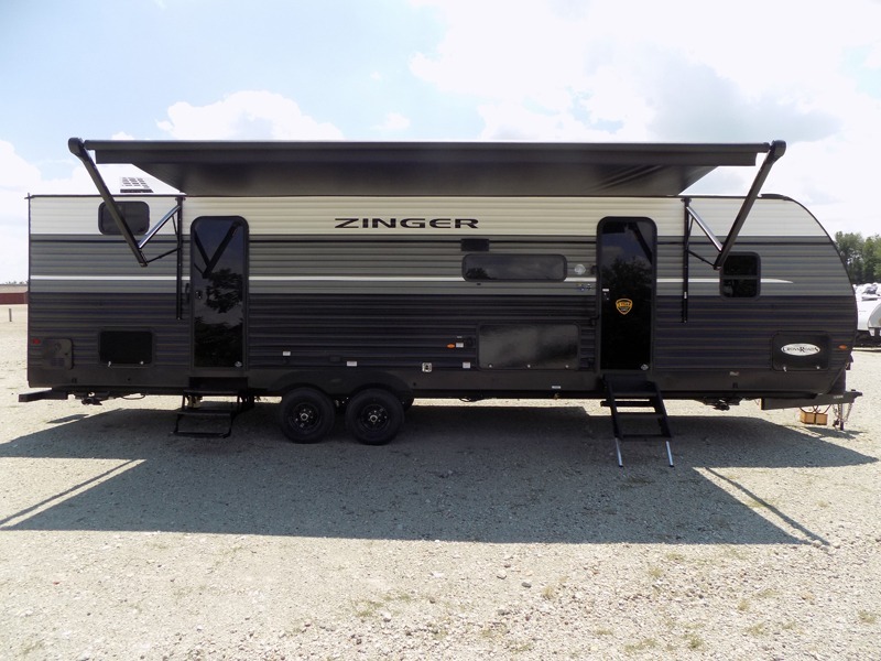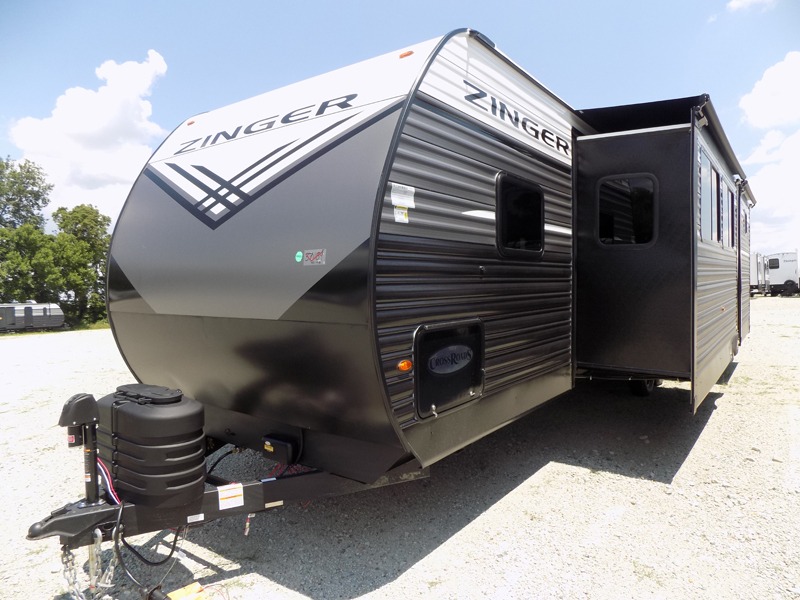 Lead your family to a great vacation getaway in any one of these CrossRoads RV Zinger travel trailers! They feature an aerodynamic front end, Keyed-Alike door locks, Secure Stance entry steps, and exterior speakers with LED accents. The interior of each model includes kitchen backsplash and pressed countertops, along with generous storage, designer valances, and LED lighting to keep your space well lit. You will also appreciate USB ports to keep your electronics charged up, and there is an AM/FM stereo with a Bluetooth soundbar to keep the party going!
