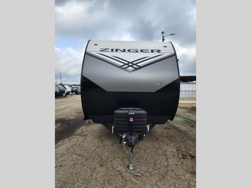Lead your family to a great vacation getaway in any one of these CrossRoads RV Zinger travel trailers! They feature an aerodynamic front end, Keyed-Alike door locks, Secure Stance entry steps, and exterior speakers with LED accents. The interior of each model includes kitchen backsplash and pressed countertops, along with generous storage, designer valances, and LED lighting to keep your space well lit. You will also appreciate USB ports to keep your electronics charged up, and there is an AM/FM stereo with a Bluetooth soundbar to keep the party going!