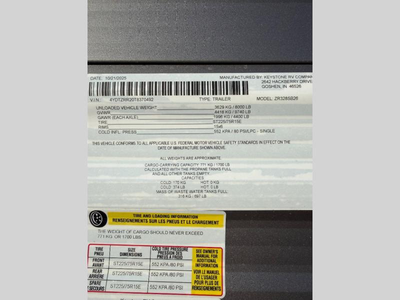 New 2026 CrossRoads RV Zinger 328SB Travel Trailer