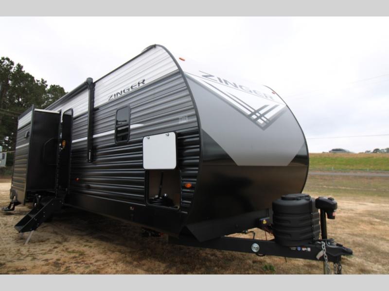 Lead your family to a great vacation getaway in any one of these CrossRoads RV Zinger travel trailers! They feature an aerodynamic front end, Keyed-Alike door locks, Secure Stance entry steps, and exterior speakers with LED accents. The interior of each model includes kitchen backsplash and pressed countertops, along with generous storage, designer valances, and LED lighting to keep your space well lit. You will also appreciate USB ports to keep your electronics charged up, and there is an AM/FM stereo with a Bluetooth soundbar to keep the party going!