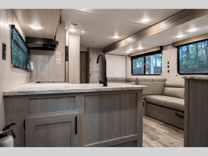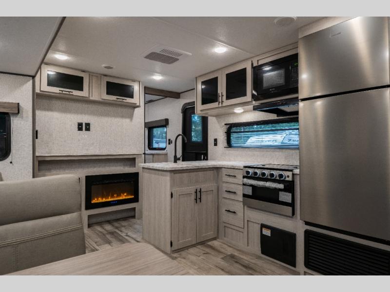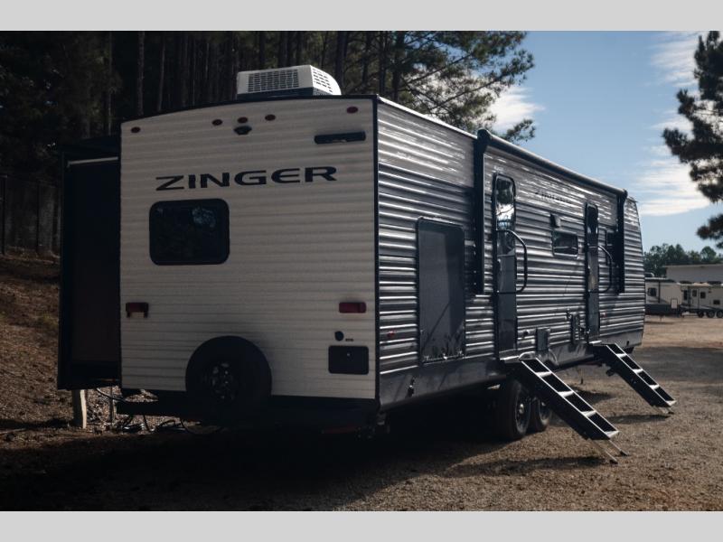 Lead your family to a great vacation getaway in any one of these CrossRoads RV Zinger travel trailers! They feature an aerodynamic front end, Keyed-Alike door locks, Secure Stance entry steps, and exterior speakers with LED accents. The interior of each model includes kitchen backsplash and pressed countertops, along with generous storage, designer valances, and LED lighting to keep your space well lit. You will also appreciate USB ports to keep your electronics charged up, and there is an AM/FM stereo with a Bluetooth soundbar to keep the party going!
