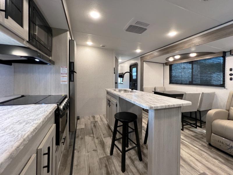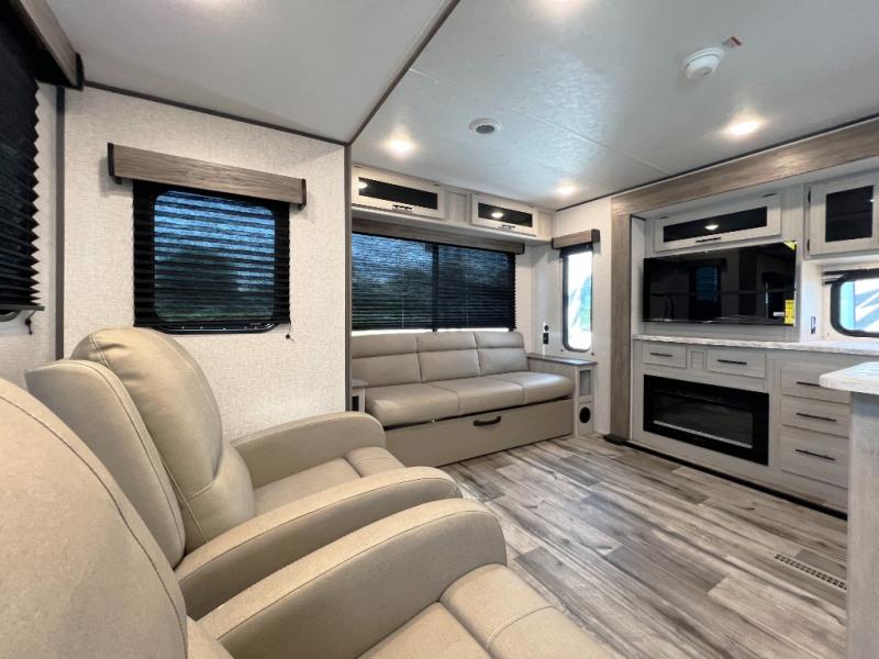 Discover luxury meets adventure in this beautifully upgraded fifth-wheel, designed with the modern traveler in mind. The 340LR packs an impressive array of features and comfort into every square foot: