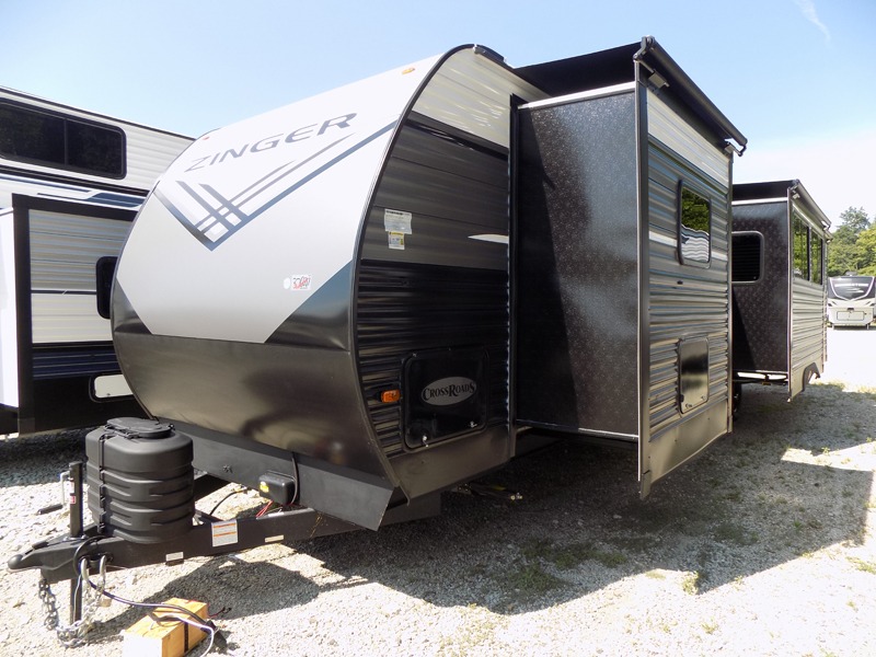 Lead your family to a great vacation getaway in any one of these CrossRoads RV Zinger travel trailers! They feature an aerodynamic front end, Keyed-Alike door locks, Secure Stance entry steps, and exterior speakers with LED accents. The interior of each model includes kitchen backsplash and pressed countertops, along with generous storage, designer valances, and LED lighting to keep your space well lit. You will also appreciate USB ports to keep your electronics charged up, and there is an AM/FM stereo with a Bluetooth soundbar to keep the party going!