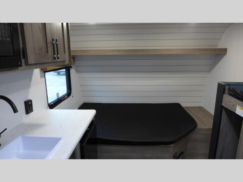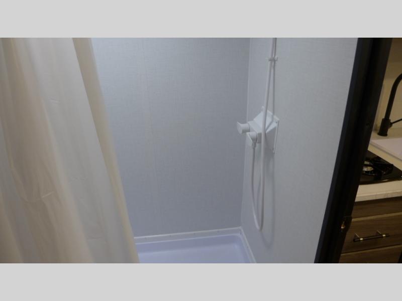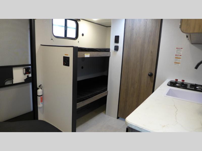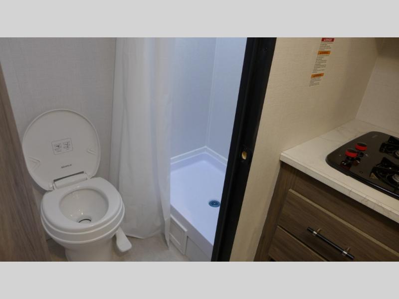 This Zinger Lite travel trailer is perfect for your next family vacation or weekend at the lake with friends. With room for five, this unit gives you the space you need to pack up the kids and the dog and get ready to hit the road! With an RV queen bed and bunk beds, everyone will have a place to sleep. The 38" booth dinette can comfortably hold one to two little ones or an adult guest. Use the two burner range to make a home-cooked meal and easily store your leftovers in the 12V refrigerator. Enjoy extra privacy with a rear corner bath that includes a 30" x 36" shower. This unit features multiple overhead compartments, so bring along the board games and other valuables from home.