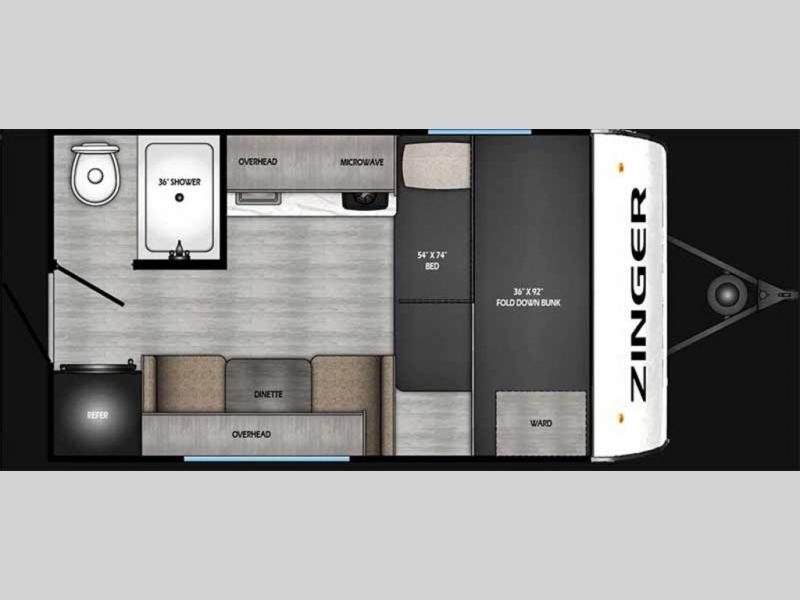 CrossRoads RV Zinger Lite Mini travel trailer 12FB highlights: