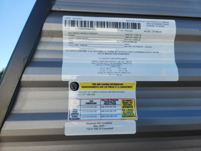 2025 CrossRoads RV Zinger Lite travel trailer 18BH highlights: