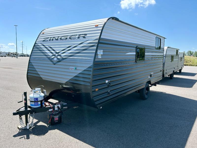 Join the CrossRoads family with a Zinger Lite travel trailer! You'll enjoy an abundance of standard features you would usually find with higher priced travel trailers. Each model features a Super Flex Alpha Roof and front diamond plate for added strength and durability. There is also an electric awning outdoors, along with pass-through storage, rear ladder prep, and a tankless on-demand water heater for added convenience. The interior features pleated shades/mini blinds/fabric window treatments, a 12V refrigerator, comfortable seating and seating spaces, plus plenty of storage for your personal belongings and camp gear!