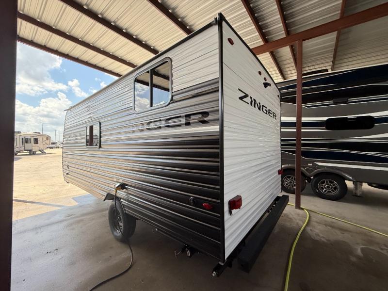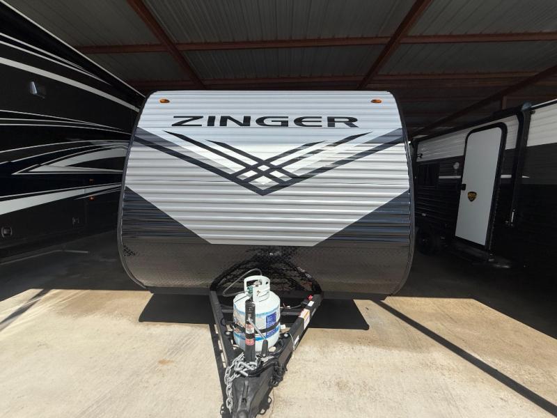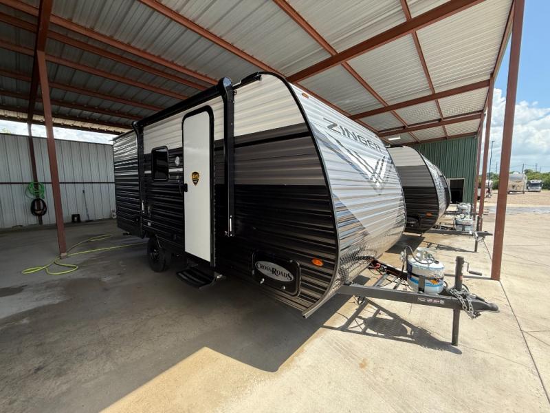 Join the CrossRoads family with a Zinger Lite travel trailer! You'll enjoy an abundance of standard features you would usually find with higher priced travel trailers. Each model features a Super Flex Alpha Roof and front diamond plate for added strength and durability. There is also an electric awning outdoors, along with pass-through storage, rear ladder prep, and a tankless on-demand water heater for added convenience. The interior features pleated shades/mini blinds/fabric window treatments, a 12V refrigerator, comfortable seating and seating spaces, plus plenty of storage for your personal belongings and camp gear!