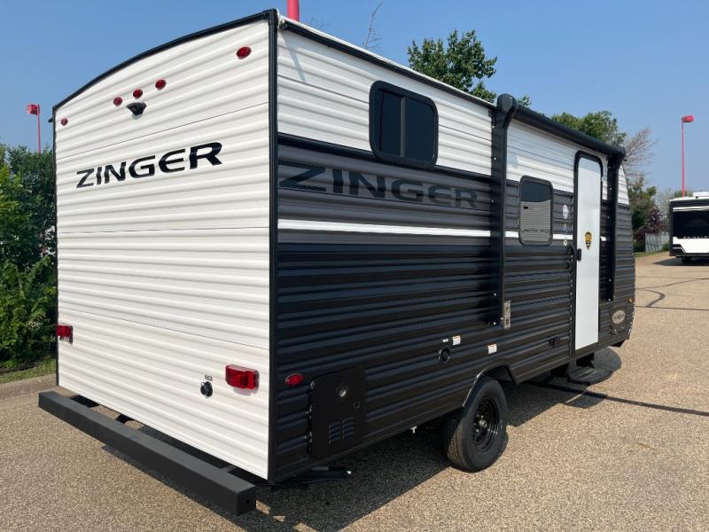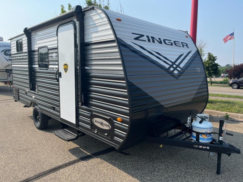 Join the CrossRoads family with a Zinger Lite travel trailer! You'll enjoy an abundance of standard features you would usually find with higher priced travel trailers. Each model features a Super Flex Alpha Roof and front diamond plate for added strength and durability. There is also an electric awning outdoors, along with pass-through storage, rear ladder prep, and a tankless on-demand water heater for added convenience. The interior features pleated shades/mini blinds/fabric window treatments, a 12V refrigerator, comfortable seating and seating spaces, plus plenty of storage for your personal belongings and camp gear!
