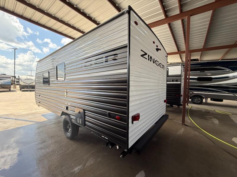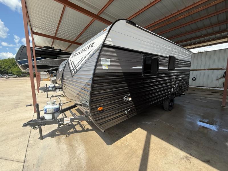 Join the CrossRoads family with a Zinger Lite travel trailer! You'll enjoy an abundance of standard features you would usually find with higher priced travel trailers. Each model features a Super Flex Alpha Roof and front diamond plate for added strength and durability. There is also an electric awning outdoors, along with pass-through storage, rear ladder prep, and a tankless on-demand water heater for added convenience. The interior features pleated shades/mini blinds/fabric window treatments, a 12V refrigerator, comfortable seating and seating spaces, plus plenty of storage for your personal belongings and camp gear!