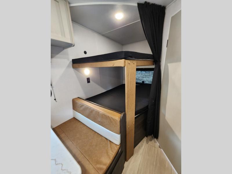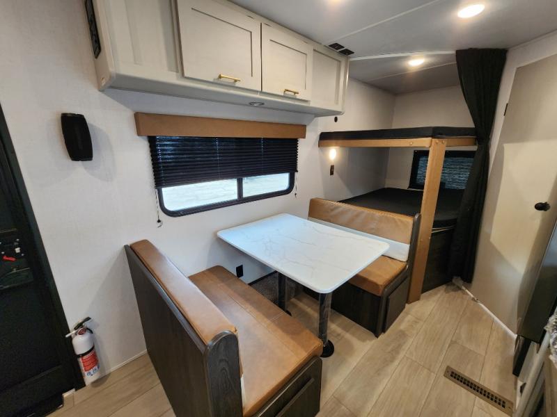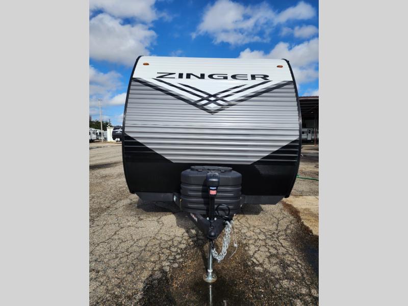 Are you ready for the best camping experience you've had yet? This Zinger Lite travel trailer sleeps eight to nine people, ensuring family memories that will last for years! You'll enjoy a front bedroom with an RV queen bed and shirt closets on either side for your clothes. The kids or your guests are going to love the bunk beds they can climb into after a day of swimming or hiking. Spend time with loved ones as you visit on the sofa or play a game on the 38" booth dinette. This travel trailer has a rear corner bath providing extra privacy everyone will enjoy.