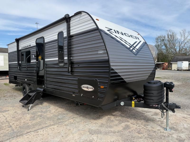 Join the CrossRoads family with a Zinger Lite travel trailer! You'll enjoy an abundance of standard features you would usually find with higher priced travel trailers. Each model features a Super Flex Alpha Roof and front diamond plate for added strength and durability. There is also an electric awning outdoors, along with pass-through storage, rear ladder prep, and a tankless on-demand water heater for added convenience. The interior features pleated shades/mini blinds/fabric window treatments, a 12V refrigerator, comfortable seating and seating spaces, plus plenty of storage for your personal belongings and camp gear!