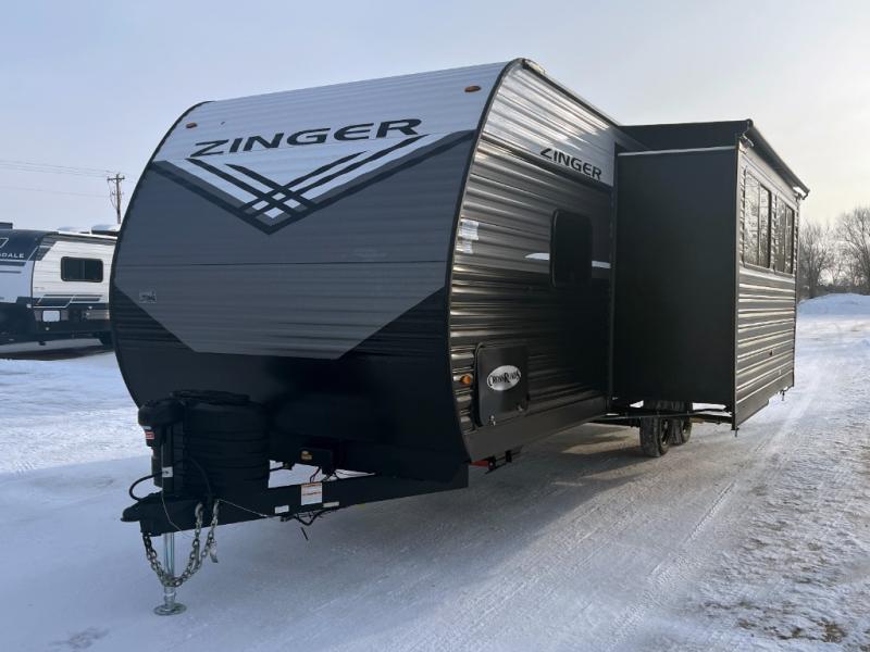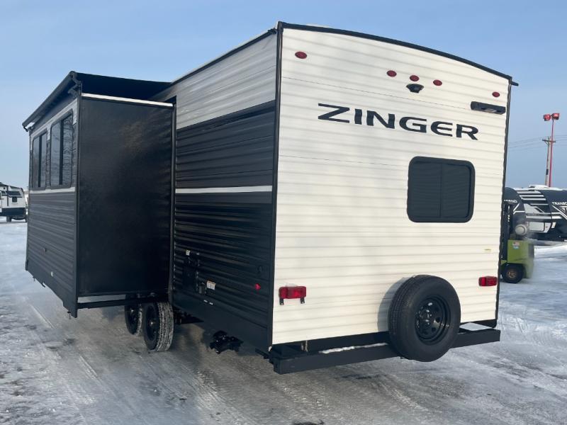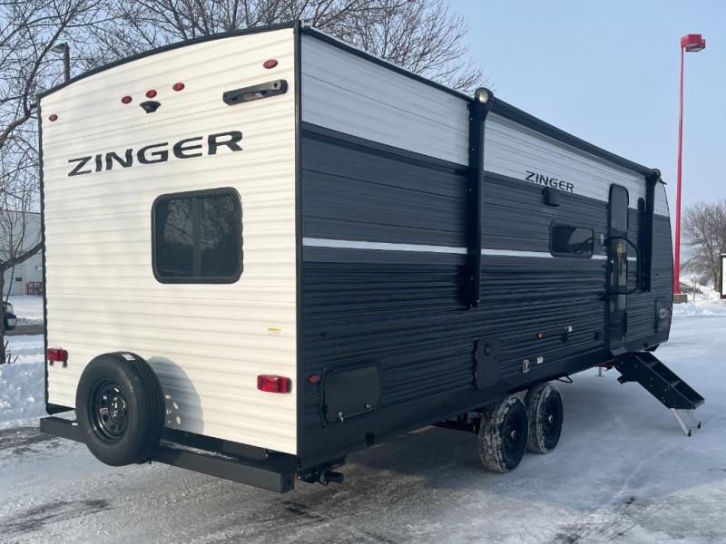 Join the CrossRoads family with a Zinger Lite travel trailer! You'll enjoy an abundance of standard features you would usually find with higher priced travel trailers. Each model features a Super Flex Alpha Roof and front diamond plate for added strength and durability. There is also an electric awning outdoors, along with pass-through storage, rear ladder prep, and a tankless on-demand water heater for added convenience. The interior features pleated shades/mini blinds/fabric window treatments, a 12V refrigerator, comfortable seating and seating spaces, plus plenty of storage for your personal belongings and camp gear!