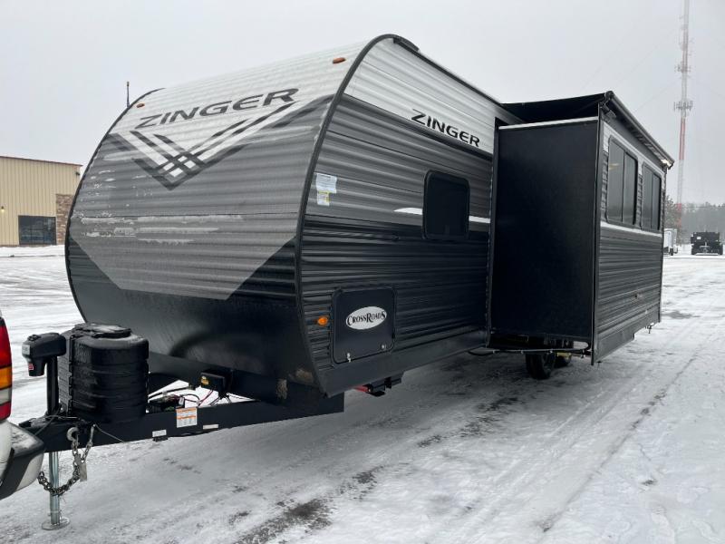 Join the CrossRoads family with a Zinger Lite travel trailer! You'll enjoy an abundance of standard features you would usually find with higher priced travel trailers. Each model features a Super Flex Alpha Roof and front diamond plate for added strength and durability. There is also an electric awning outdoors, along with pass-through storage, rear ladder prep, and a tankless on-demand water heater for added convenience. The interior features pleated shades/mini blinds/fabric window treatments, a 12V refrigerator, comfortable seating and seating spaces, plus plenty of storage for your personal belongings and camp gear!
