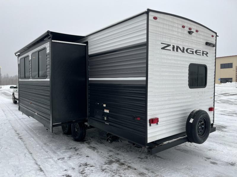 Join the CrossRoads family with a Zinger Lite travel trailer! You'll enjoy an abundance of standard features you would usually find with higher priced travel trailers. Each model features a Super Flex Alpha Roof and front diamond plate for added strength and durability. There is also an electric awning outdoors, along with pass-through storage, rear ladder prep, and a tankless on-demand water heater for added convenience. The interior features pleated shades/mini blinds/fabric window treatments, a 12V refrigerator, comfortable seating and seating spaces, plus plenty of storage for your personal belongings and camp gear!