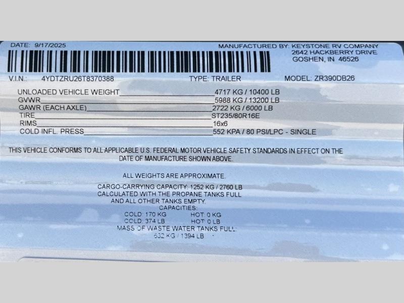 | VIN | 4YDTZRU26T8370388 |