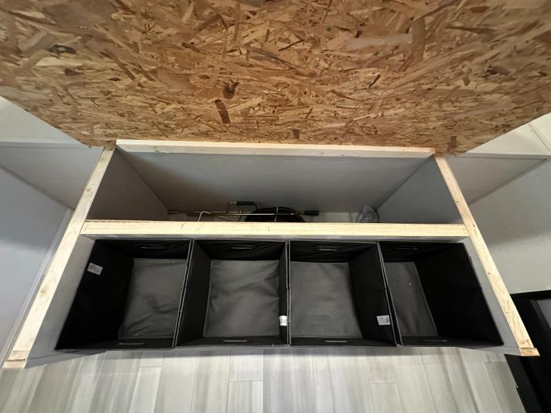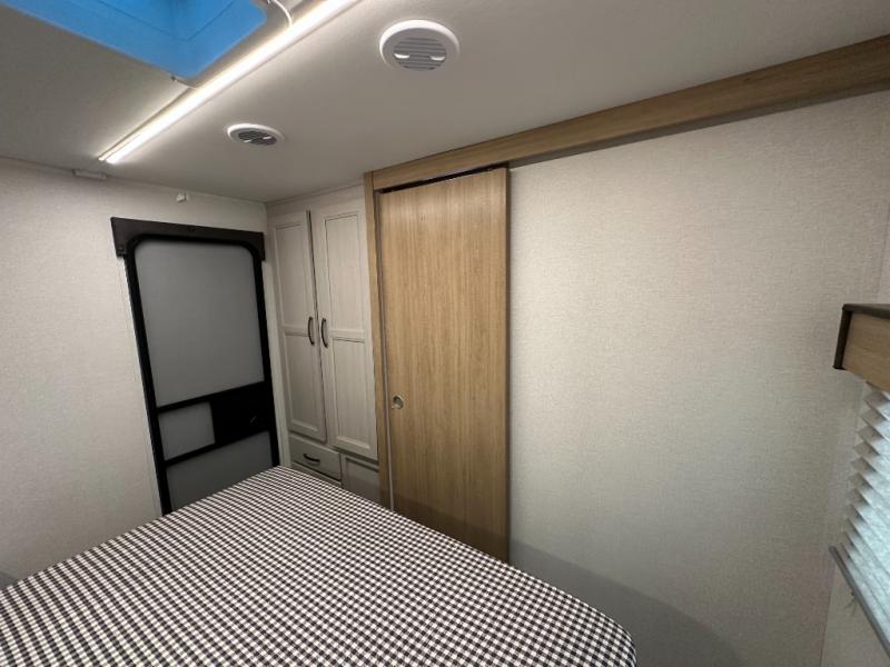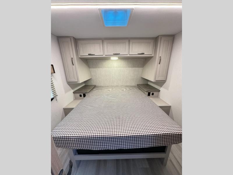 Front Bedroom (Queen Bed): Private area up front with queen bed, wardrobes or storage.