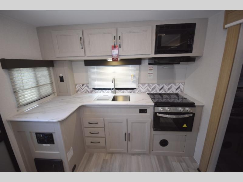 With its smartly designed rear kitchen, this model offers generous counter space, abundant storage, and everything you need to whip up meals wherever the road takes you.