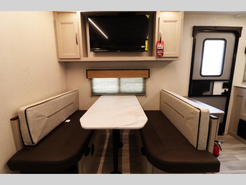 King size bed, spacious rear kitchen, dinette, tri-fold sofa and more comes with the all new 2026 Cruiser Embrace EL26RKS