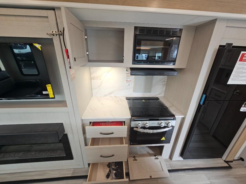 - Ample Storage Inside & Out – Store all your gear with pass-through storage, kitchen cabinets, under-bed storage, and multiple overhead compartments, making long trips more convenient.