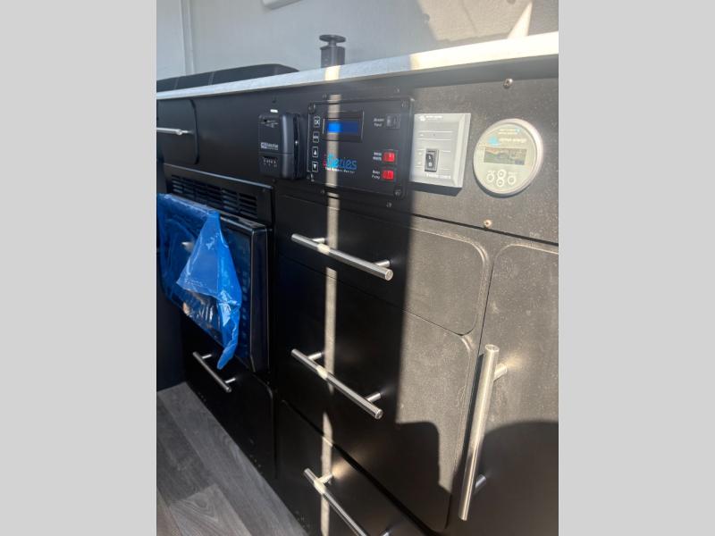 The Cube Series camper uses lightweight materials to provide an easy-to-tow experience. The roof can be opened and closed electrically. Each model has a standard furnace and is prewired for a solar panel, and there's a 30 amp shore power hookup ready for use at the campground. LED lights and integrated power sockets and USB ports make charging easy. Wood look vinyl flooring is easy to clean, and tinted vinyl sliding windows provide a great view. A variety of interior and exterior color options are ready for you to customize these to your liking!