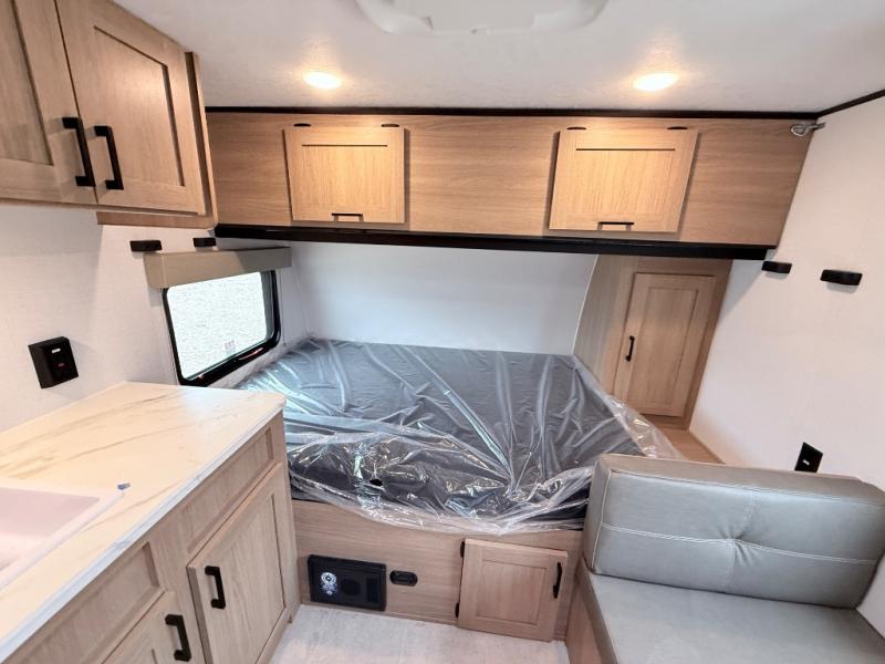 The all new 2026 Aspen Trail 13FB is a lightweight, compact travel trailer model from the Dutchmen RV brand, designed for couples or small families and known for being SUV-towable. The "13FB" indicates a 13-foot floor plan with a front bed. Key features often include a single booth dinette, overhead bed, large shower, and a streamlined interior with a smart design.