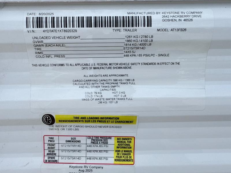 New 2026 Dutchmen RV Aspen Trail 13FB Travel Trailer