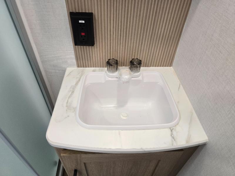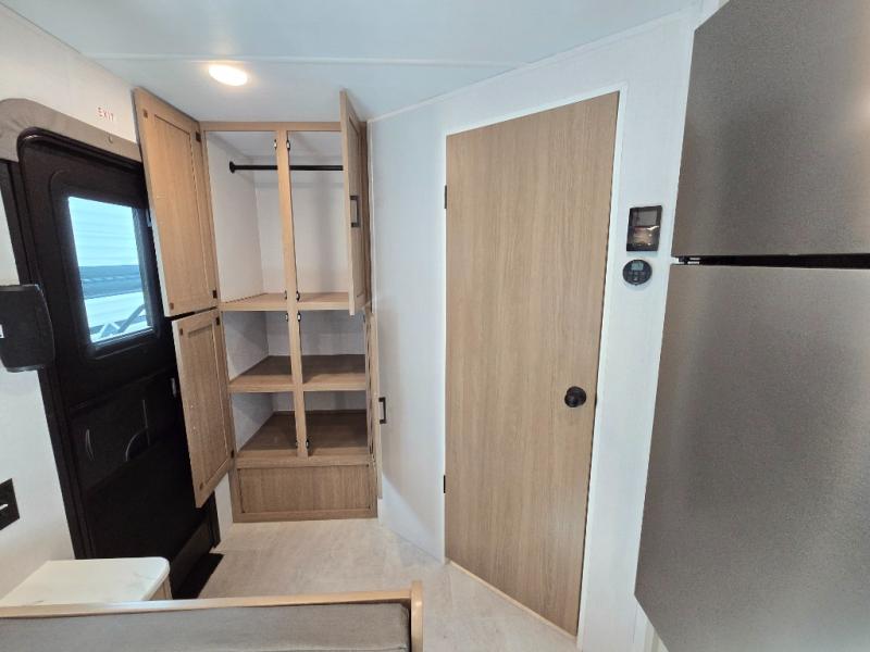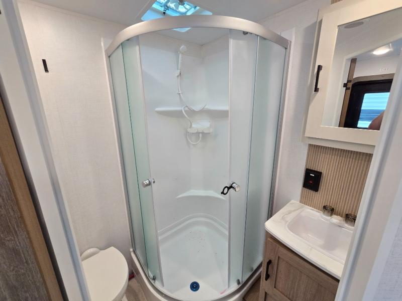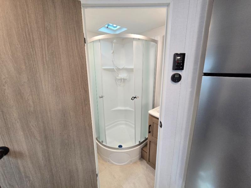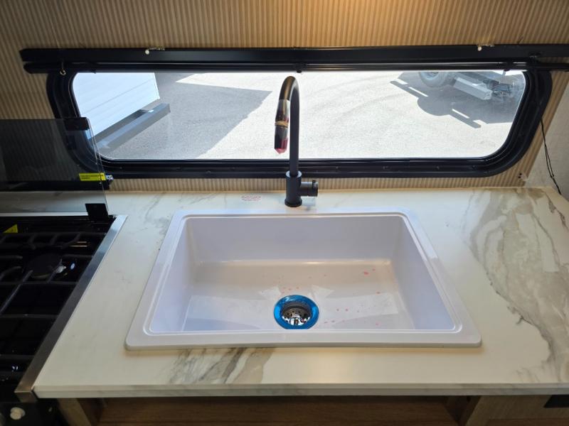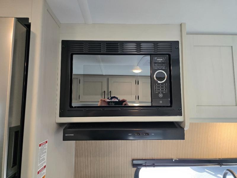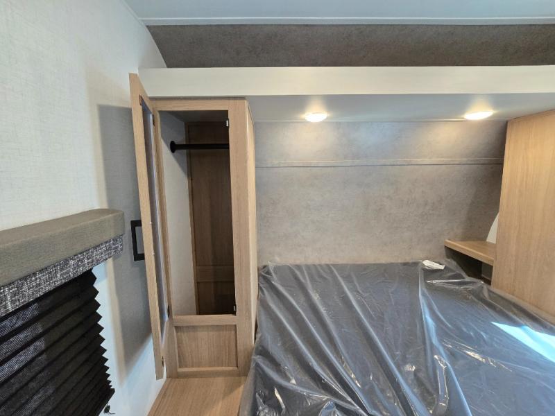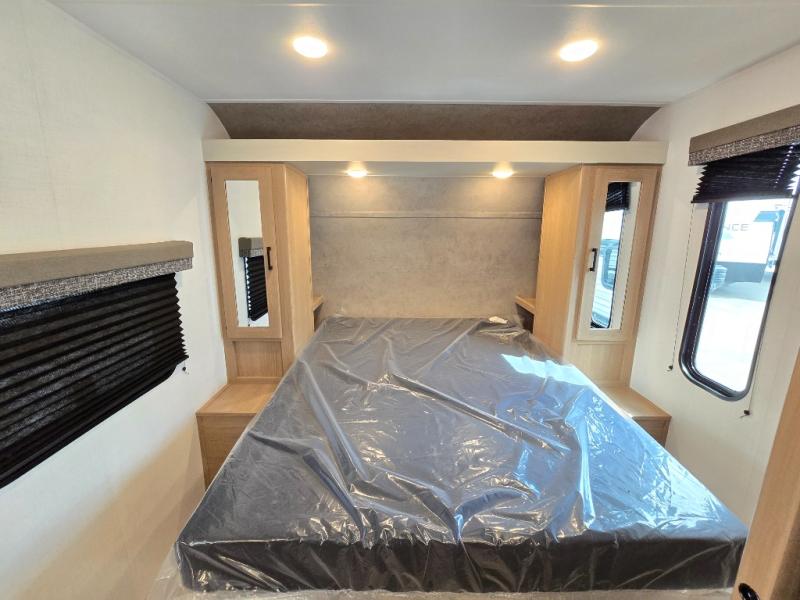Whatever reason you camp, this lightweight trailer allows you to easily tow to your campsite, and enjoy comforts of home such as your own residential queen bed, wardrobe storage, and a full bathroom with a shower. The booth dinette provides both seating space and sleeping space for a guest. The cook will have an oven and a microwave to make meals, and a 10 cu. ft. 12V refrigerator for cold items, plus a galley sink with high rise faucet to keep the dishes clean.