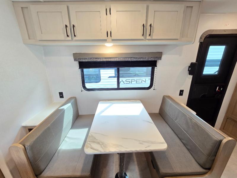 With any Aspen Trail LE travel trailer by Dutchmen, you will have front diamond plate protection, magnetic baggage door catches, and easy lube axles for smooth towing. The interior offers a Home Series interior design collection for an at home feel, full extension drawer guides throughout, oversized windows, pleated shades, and no carpet to quickly clean up sand and water from the lake. You'll also appreciate the high efficiency furnace, on-demand tankless water heater, and the Solar Spirit Packages for off-grid capabilities. Make your selection today and enjoy a smaller, lighter-weight RV!