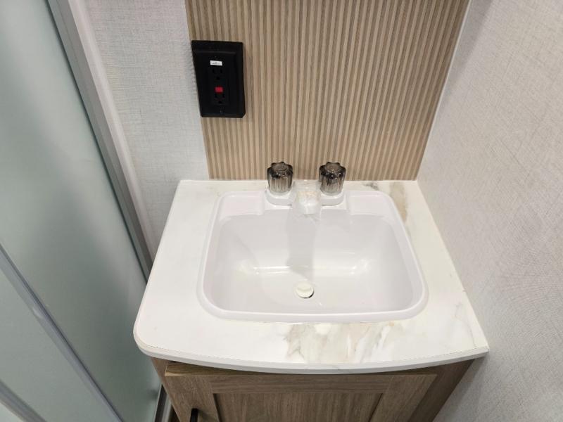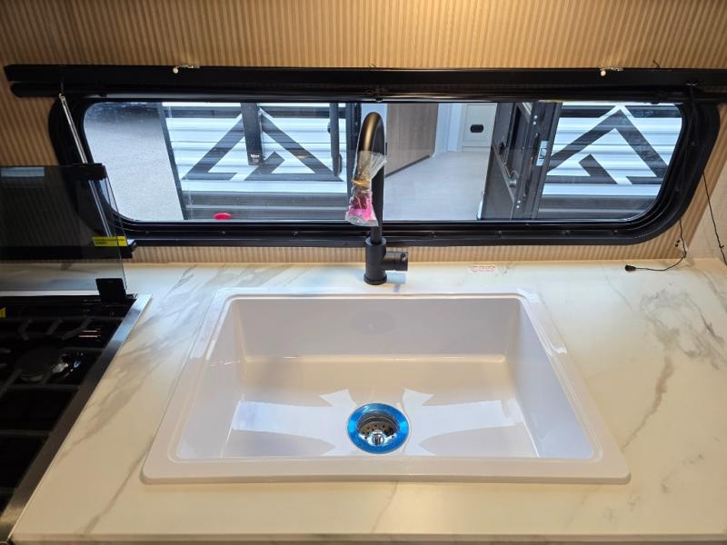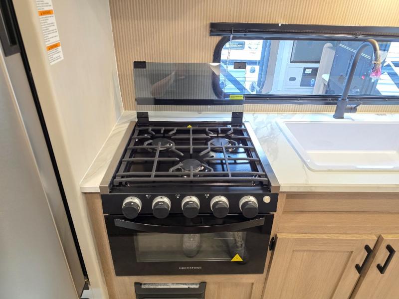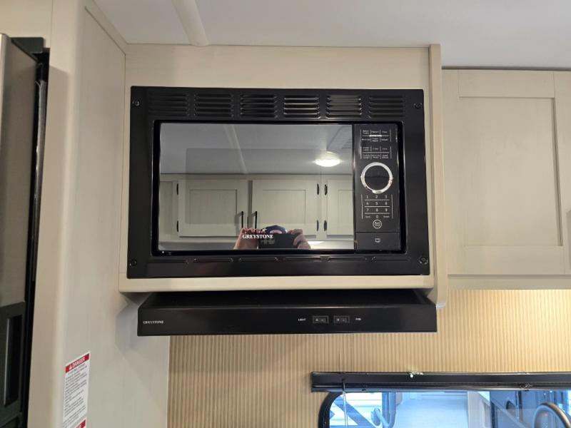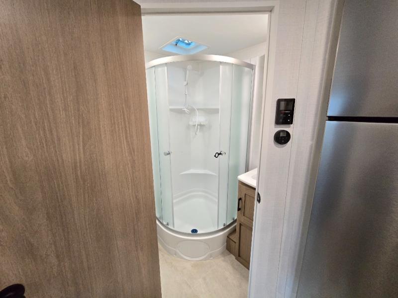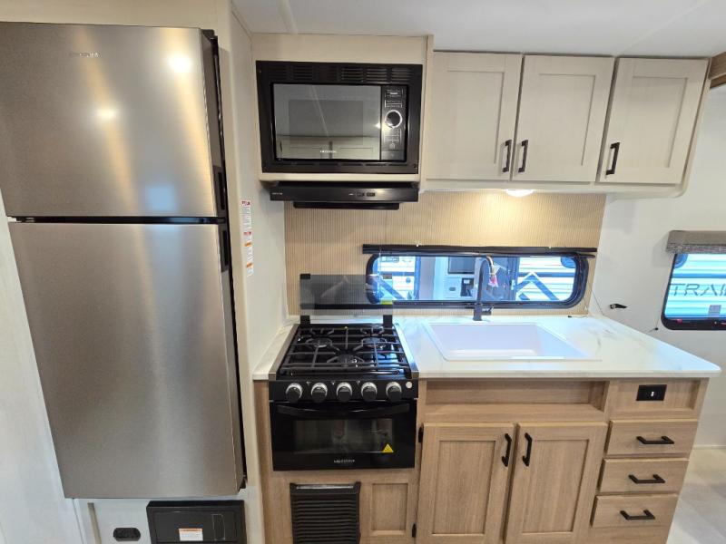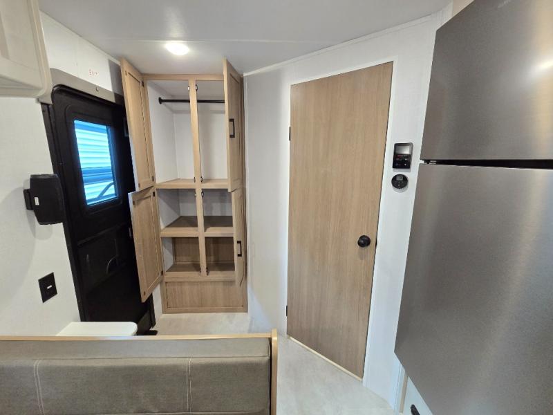 Whatever reason you camp, this lightweight trailer allows you to easily tow to your campsite, and enjoy comforts of home such as your own residential queen bed, wardrobe storage, and a full bathroom with a shower. The booth dinette provides both seating space and sleeping space for a guest. The cook will have an oven and a microwave to make meals, and a 10 cu. ft. 12V refrigerator for cold items, plus a galley sink with high rise faucet to keep the dishes clean.