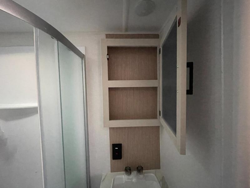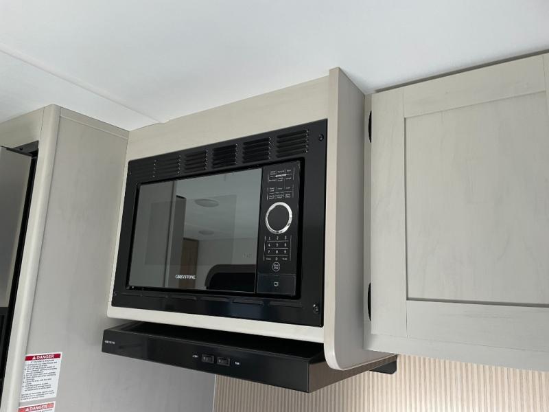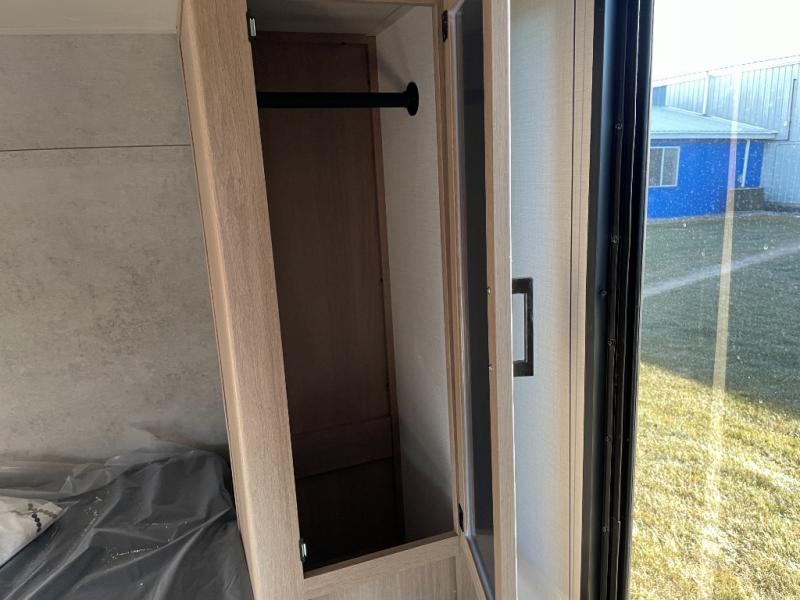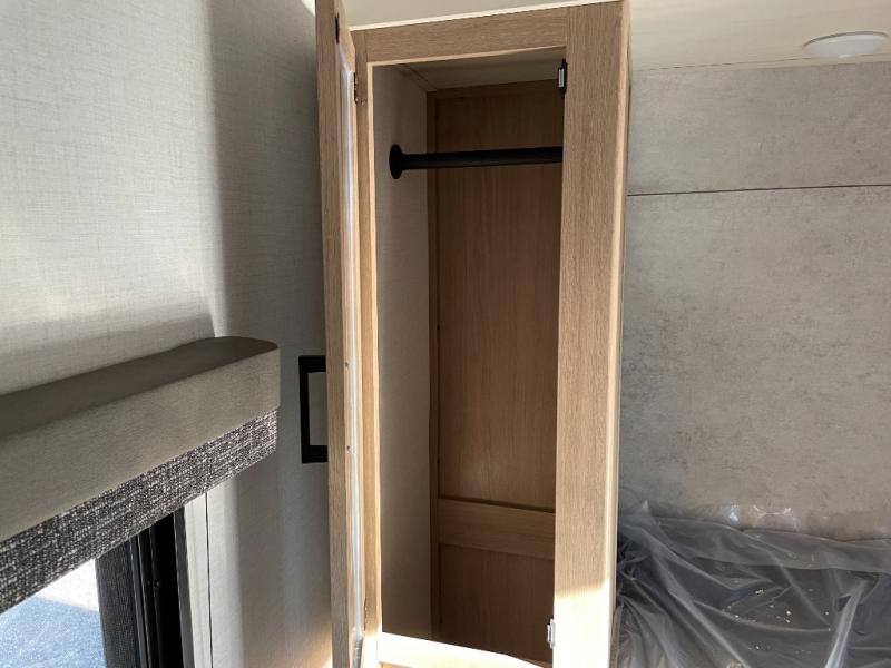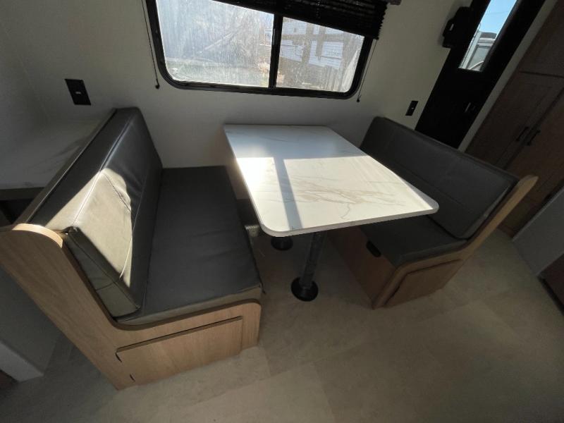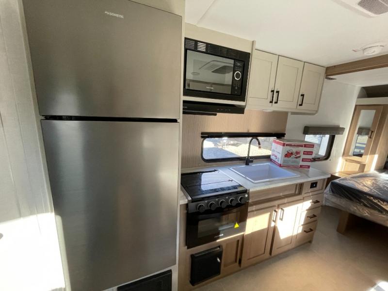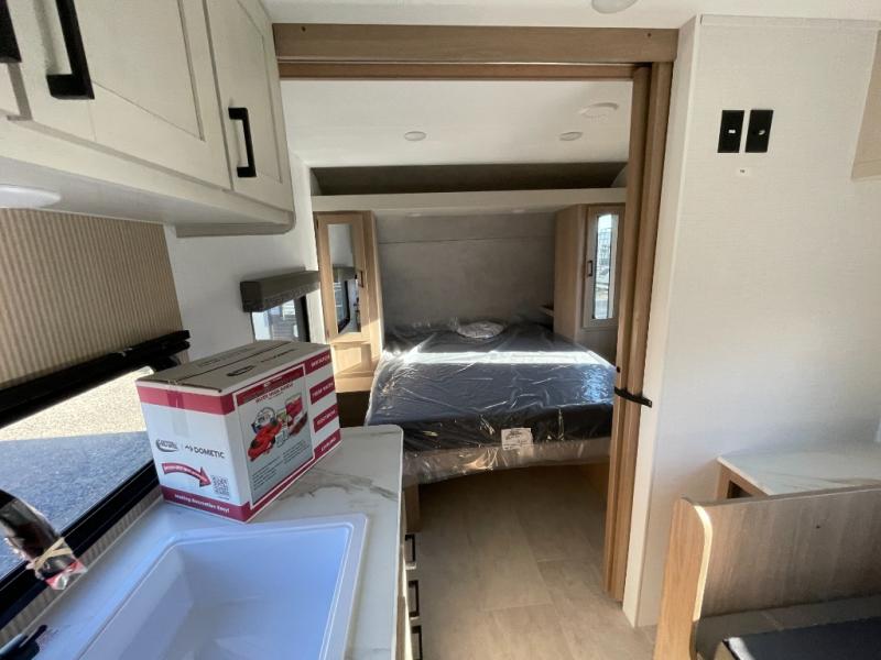 Whatever reason you camp, this lightweight trailer allows you to easily tow to your campsite, and enjoy comforts of home such as your own residential queen bed, dual bedside closets, and a full bathroom with a shower. The booth dinette provides both seating space and sleeping space for a guest. The cook will have an oven and a microwave to make meals, and a 12V refrigerator for cold items, plus a galley sink.