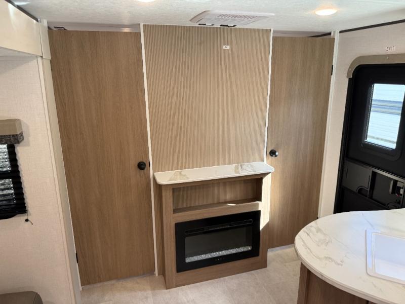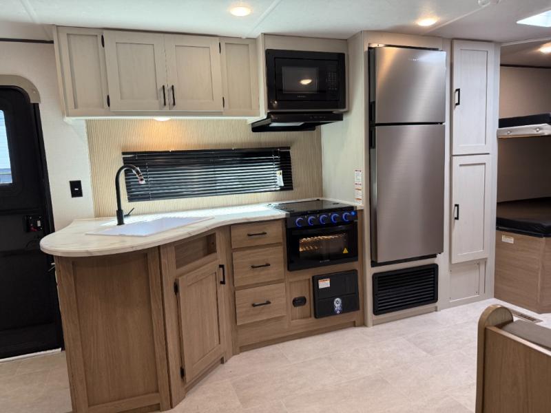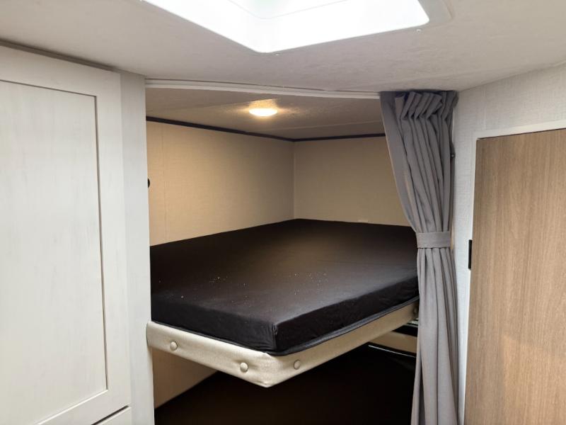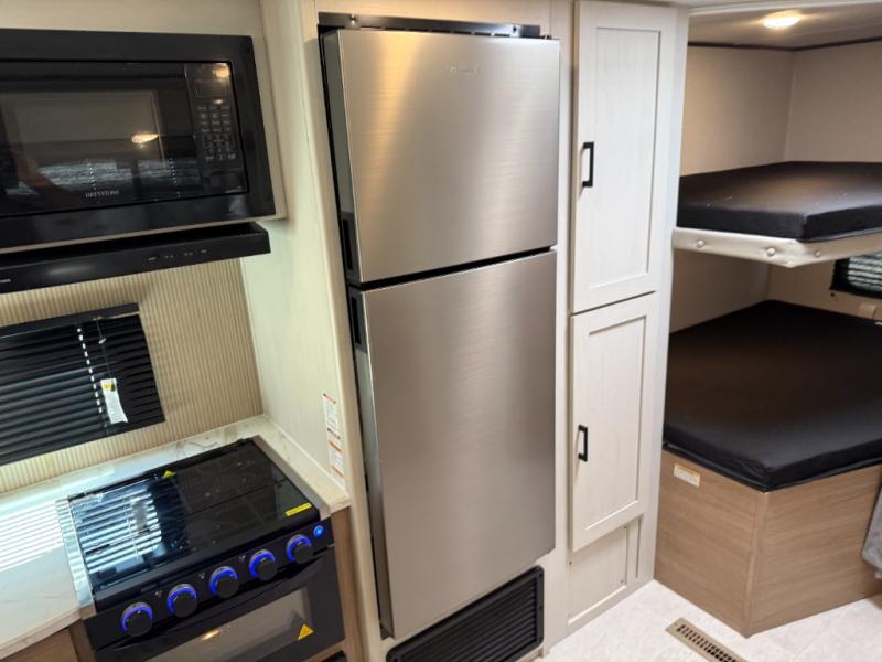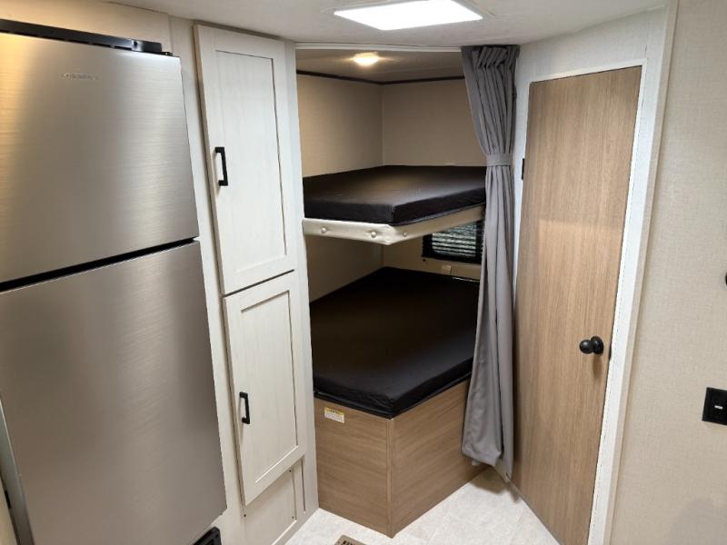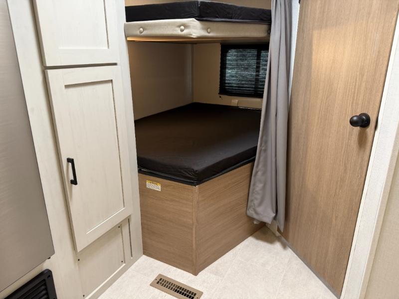 Get ready for fun and relaxation at the campgrounds with this trailer in your campsite. You can fish in the river, hike the trails and relax under the power awning before heading inside to enjoy the comforts of home. You will also enjoy having double access to the private bedroom which offers a residential queen bed and dual closets, plus the full bathroom will keep you refreshed after outdoor fun. The double-size bunks offer sleeping for four, and the furniture doubles as extra sleeping space. The cook will have full amenities including a 10 cu. ft. 12V refrigerator to store lots of cold items. And the large slide gives everyone more floor space.