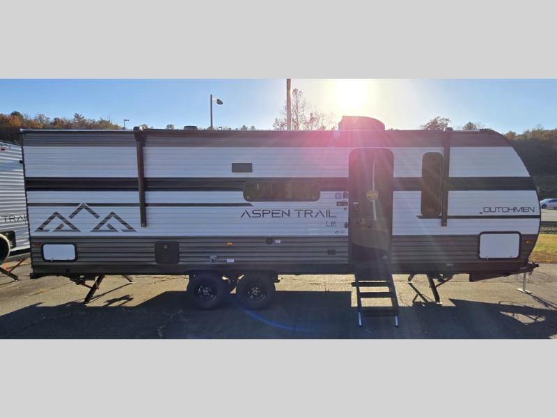 With any Aspen Trail LE travel trailer by Dutchmen, you will have front diamond plate protection, magnetic baggage door catches, and easy lube axles for smooth towing. The interior offers a Home Series interior design collection for an at-home feel, full extension drawer guides throughout, oversized windows, pleated shades, and no carpet to quickly clean up sand and water from the lake. You'll also appreciate the high efficiency furnace, on-demand tankless water heater, and the Solar Spirit Packages for off-grid capabilities. Make your selection today and enjoy a smaller, lighter-weight RV!