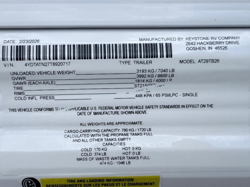 New 2026 Dutchmen RV Aspen Trail LE 29TB Travel Trailer