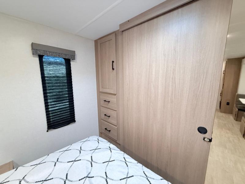 With any Aspen Trail LE travel trailer by Dutchmen, you will appreciate lightweight towing and comfort at every turn! There is a heated and enclosed underbelly outside, along with a power awning with LED lights, a large folding entry grab handle, plus a power tongue jack and electric stabilizer jacks. There is also a 100-watt roof solar panel with a 30amp charge controller for some off grid power. Head inside to enjoy the 6' 10" interior height, pleated shades throughout, dual shelf nightstands plus ample storage for your personal belongings, camp gear and more!