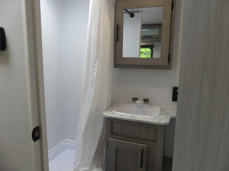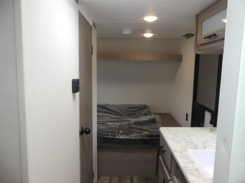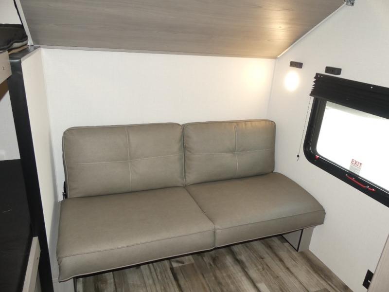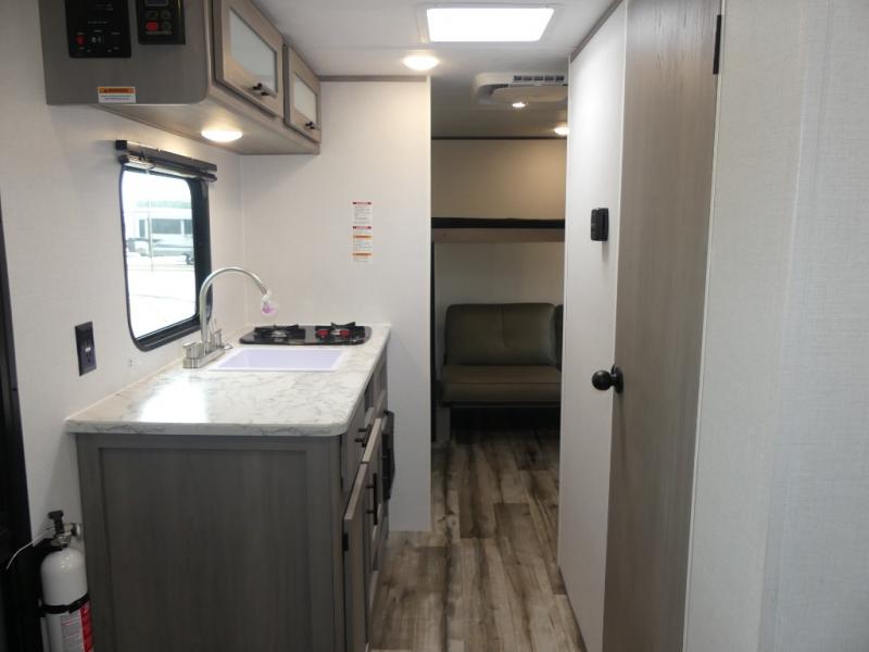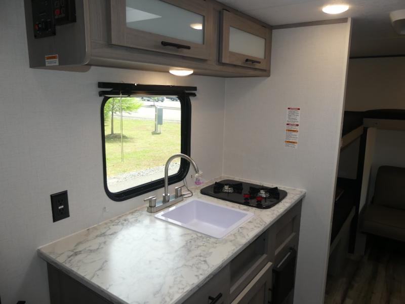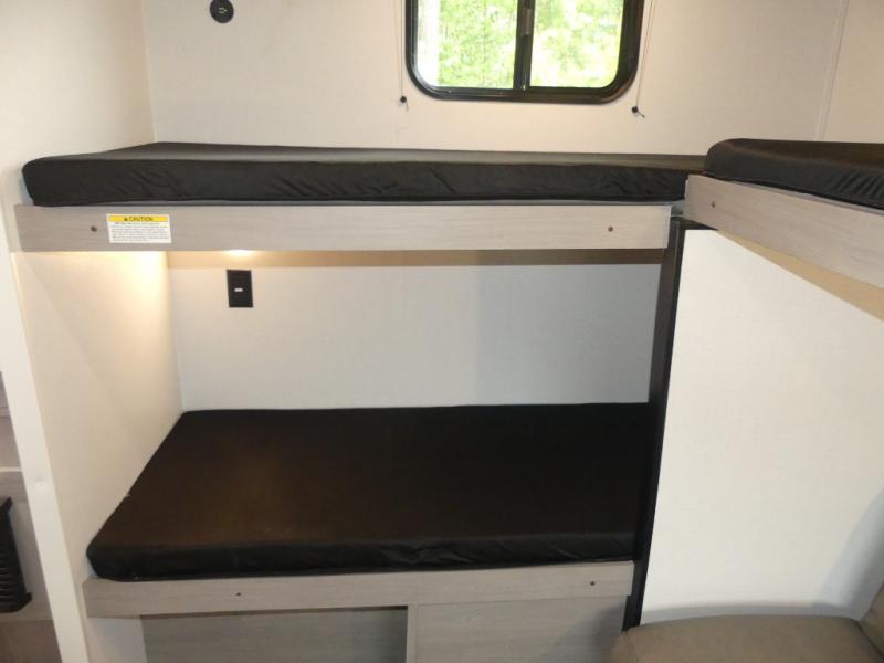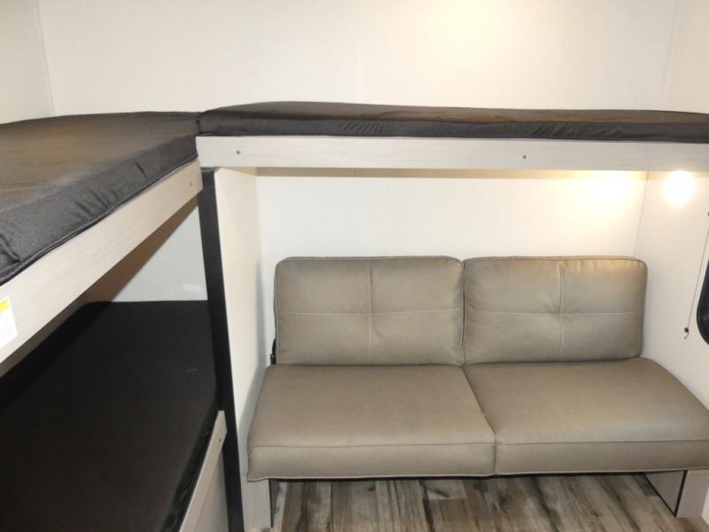 This compact travel trailer will be perfect for trips to your favorite camping spot! There is a front queen bed for a comfy night's rest plus rear bunk beds with a 60" jackknife sofa under one bunk, allowing you to sleep five campers each night! A two burner cooktop and microwave oven will let you whip up breakfast in the morning, and there is a full bath onboard so you don't have to leave your camper in the middle of the night.