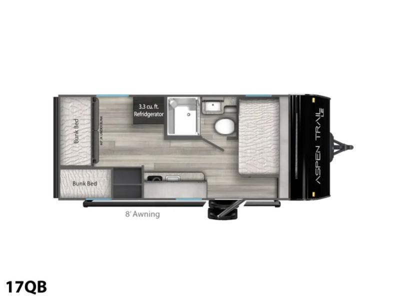 Any Aspen Trail Mini travel trailer by Dutchmen RV will provide you and your family a lightweight and compact unit filled with comfort and style. Each unit features front diamond plate protection from road debris as you travel, and easy lube axles for great performance. Inside, floorplan layouts are designed for four to eight depending on your choice and whether you would like a bunk model or a slide for added space. You will appreciate the upgraded residential flooring, LED lighting, the Systems Monitor Panel, full extension drawer guides throughout, as well as a two-burner range top and microwave for cooking, and a complete bath for added convenience. Come choose your favorite compact, lightweight Aspen Trail Mini and enjoy your next adventure!