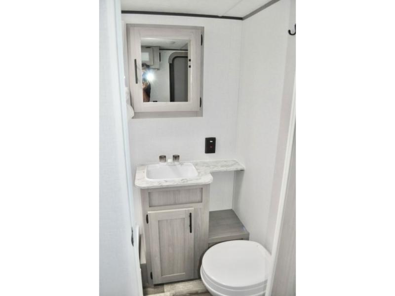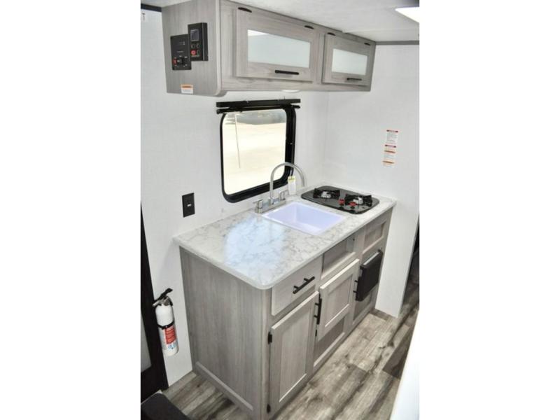 This compact travel trailer will be perfect for trips to your favorite camping spot! There is a front queen bed for a comfy night's rest plus rear bunk beds with a 60" jackknife sofa under one bunk, allowing you to sleep five campers each night! A two burner cooktop and microwave oven will let you whip up breakfast in the morning, and there is a full bath onboard so you don't have to leave your camper in the middle of the night.