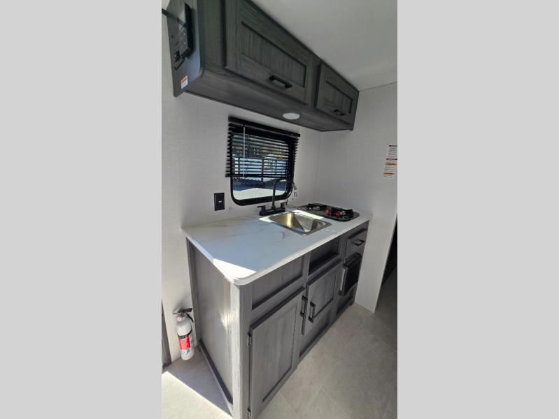 Any Aspen Trail Mini travel trailer by Dutchmen RV will provide you and your family a lightweight and compact unit filled with comfort and style. Each unit features an 8' 0" wide-body chassis, a power awning, and tinted safety glass windows. The 6' 4" interior height and pleated night shades will make you feel right at home, and you'll appreciate ample storage space for your personal belongings, camp gear and more! Each model also includes a 20,000 BTU furnace and 8,000 BTU roof-mounted A/C to keep you comfortable!