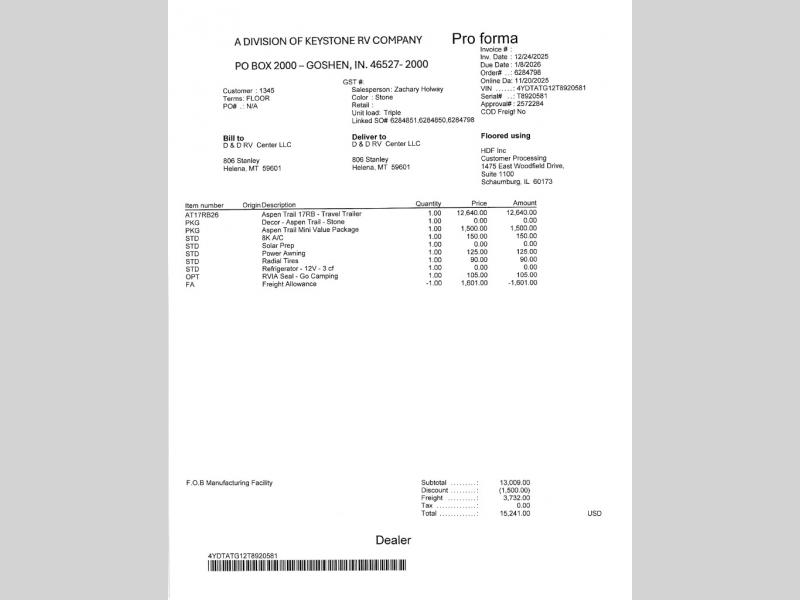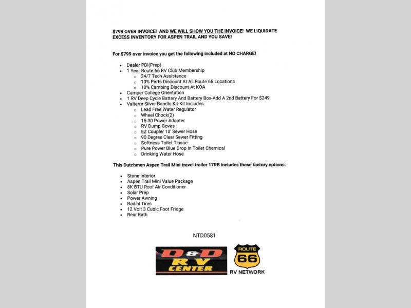 $799 OVER INVOICE! AND WE WILL SHOW YOU THE INVOICE! WE LIQUIDATE EXCESS INVENTORY FOR ASPEN TRAIL AND YOU SAVE!