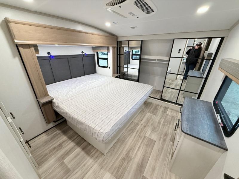 Each one of these Dutchmen RV Astoria Half-Ton fifth wheels feature a fiberglass exterior for added durability and an All Weather Thermal Package so you can camp all year long! There are also MorRyde Solid entry steps, slam latch baggage doors, and many more exterior conveniences. You'll enjoy a 200W solar panel for off-grid capabilities, slam latch baggage doors, and a power awning with LED lights for an inviting outdoor space. The interior is designed with bathroom backsplash, night shades throughout the living area, and Thomas Payne furniture collection. The on-demand tankless water heater will provide endless hot showers, and the dual ducted A/C will keep you cool all summer long.